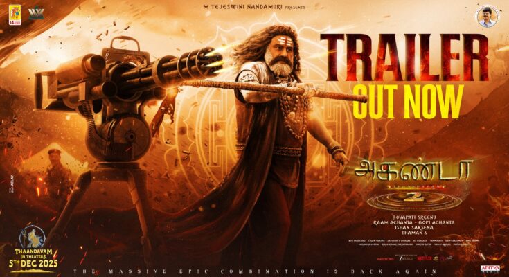 காட் ஆஃப் மாஸஸ் நந்தமூரி பாலகிருஷ்ணா மற்றும் ப்ளாக்பஸ்டர் இயக்குநர் போயபாடி ஶ்ரீனு கூட்டணியில் பெரும் எதிர்பார்ப்பை ஏற்படுத்தியிருக்கும் மாபெரும் ஆன்மீக-ஆக்சன் அதிரடி திரைப்படமான அகண்டா 2: தாண்டவம், வரும் டிசம்பர் 5ஆம் தேதி உலகம் முழுவதும் பிரம்மாண்டமாக வெளியாவதற்குத் தயாராகியுள்ளது. தற்போது இந்த திரைப்படத்திற்காக நாடு முழுவதும் மிக தீவிரமான மற்றும் பரவலான புரமோசன் பணிகள் நடைபெற்று வருகிறது.
