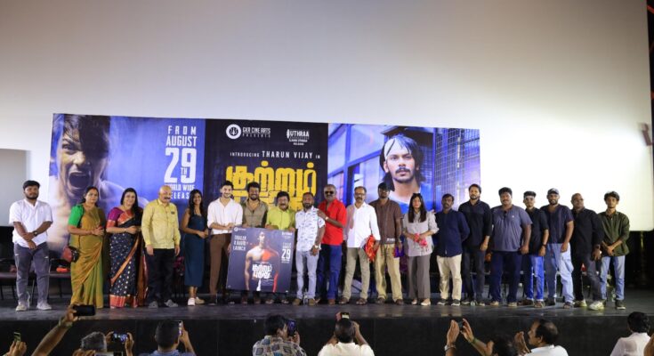 ஜிகேஆர் சினி ஆர்ட்ஸ் தயாரிப்பில் உருவாகி இருக்கும் திரைப்படம் ‘குற்றம் புதிது’. நோவா ஆம்ஸ்ட்ராங் எழுதி இயக்கி இருக்கும் இந்தப் படத்தில் தருண் விஜய் கதாநாயகனாக அறிமுகமாகிறார். கதாநாயகியாக சேஷ்விதா கனிமொழி நடிக்கிறார். இவர்களுடன் மது சூதனராவ், நிழல்கள் ரவி, ராமச்சந்திரன் துரை, பாய்ஸ் ராஜன், பிரியதர்ஷினி ராஜகுமார் உள்ளிட்டப் பலர் நடித்திருக்கின்றனர். க்ரைம் த்ரில்லர் ஜானரில் உருவாகி இருக்கும் இந்தப் படம் ஆகஸ்ட் 29 ஆம் தேதி திரையரங்குகளில் வெளியாகிறது. இதன் இசை வெளியீட்டு விழா நடைபெற்றது.