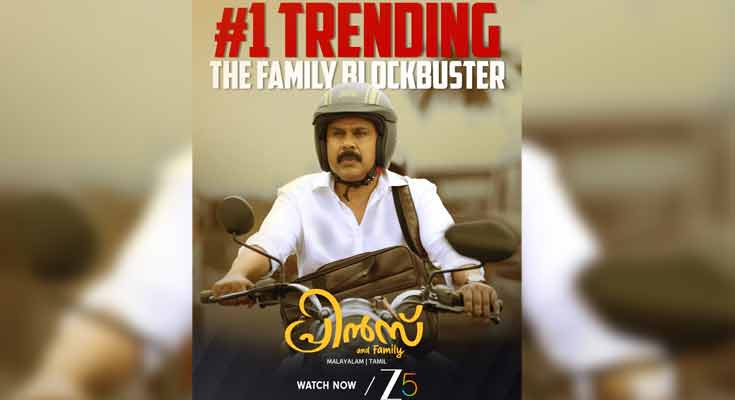 இந்தியாவின் முன்னணி ஓடிடி தளமான ZEE5, கடந்த ஜூன் 20-ஆம் தேதி, மலையாள முன்னணி நடிகர் திலீப் நடித்த ‘பிரின்ஸ் அண்ட் ஃபேமிலி’ திரைப்படத்தைத் தமிழ் மற்றும் மலையாள மொழிகளில் வெளியிட்டது. திரை ரசிகர்கள் மற்றும் பொதுமக்களிடம் பெரும் வரவேற்பைப் பெற்ற இப்படம், Google இல் ரசிகர்களின் விருப்பத் தேடலில் டிரெண்டிங்கில் நம்பர் 1 இடத்தைப் பிடித்து, சாதனை படைத்துள்ளது.