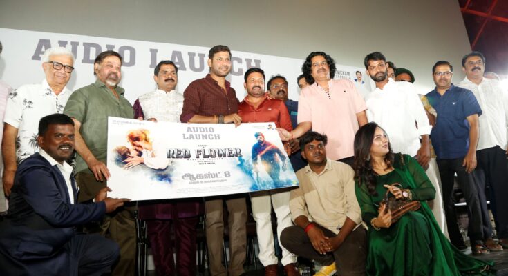 ஸ்ரீகாளிகாம்பாள் பிக்சர்ஸ் சார்பில் கே.மாணிக்கம் தயாரிக்க, விக்னேஷ் கதையின் நாயகனாக நடித்திருக்கும் திரைப்படம் “ரெட் ஃப்ளவர்” (Red flower). ஆக்‌ஷன் த்ரில்லர் படமாக உருவாகியுள்ள இந்த படத்தை ஆண்ட்ரூ பாண்டியன் எழுதி இயக்கியிருக்கிறார். ஆகஸ்ட் 8ஆம் தேதி திரைக்கு வரவிருக்கும் இந்த படத்தின் இசை மற்றும் முன்னோட்ட வெளியீட்டு விழா சென்னை கமலா திரையரங்கில் நடிகர் விஷால், இயக்குனர்கள் பி.வாசு, சுராஜ் மற்றும் தமிழ் திரையுலகின் முன்னணி திரைப் பிரபலங்கள் கலந்து கொள்ள கோலாகலமாக நடைபெற்றது.