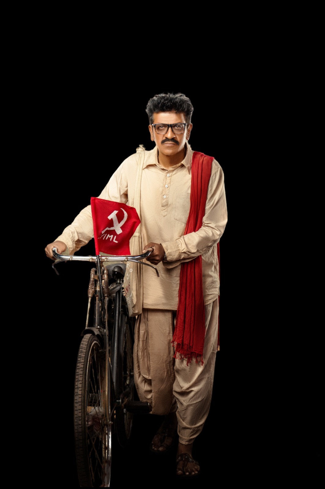 இன்று வெளியிடப்பட்ட ஃபர்ஸ்ட் லுக் போஸ்டரில், டாக்டர் சிவராஜ்குமார் எளிமையான அதே நேரம், வலிமையான தோற்றத்தில் காட்சியளிக்கிறார். கண்கண்ணாடி அணிந்து, வெள்ளை குர்தா –பைஜாமா மற்றும் தோளில் சிவப்பு துண்டு போர்த்திய நிலையில், சைக்கிளை தள்ளிச்செலும் காட்சியில், பின்னணியில் சட்டமன்றம் தெரிகிறது. சைக்கிளில் தொங்கும் நெல் மற்றும் சுத்தியல் சின்னம் கொண்ட சிவப்புக் கொடி, அவரது இடதுசாரி சிந்தனையையும், அரசியலின் தன்மையையும்  வெளிப்படுத்துகிறது. கும்மடி நரசைய்யாவின் பணிவு மற்றும் உள்மன வலிமையை சிவராஜ்குமார் முழுமையாக வெளிப்படுத்தியுள்ளார்.