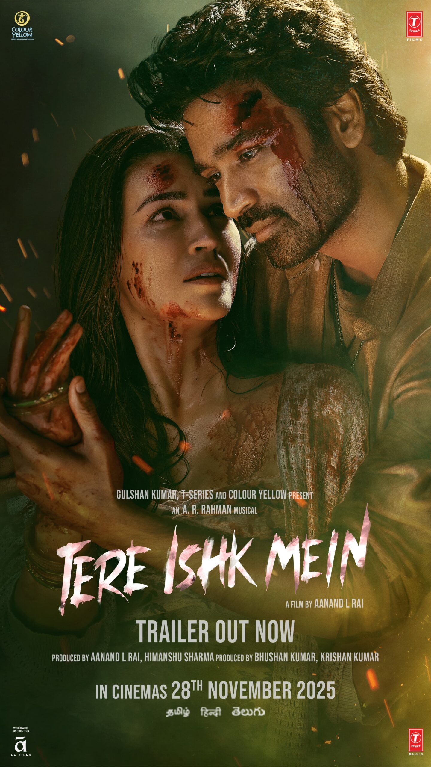 குல்ஷன் குமார், T-சீரிஸ் மற்றும் கலர் யெல்லோ நிறுவனங்கள் வழங்கும் ‘தேரே இஷ்க் மே’ திரைப்படத்தை ஆனந்த் L ராய் மற்றும் ஹிமான்ஷு ஷர்மா தயாரிக்க, பூஷன் குமார் மற்றும் கிருஷண் குமார் இணைந்து தயாரித்துள்ளனர். ஹிமான்ஷு ஷர்மா மற்றும் நீரஜ் யாதவ் எழுதிய திரைக்கதையுடன் ஆனந்த் L ராய் இயக்கியுள்ள இப்படம், AR ரஹ்மான் இசையமைப்பில், ஈர்ஷாத் காமில் பாடல் வரிகளுடன் உருவாகியுள்ளது. தனுஷ் மற்றும் க்ரிதி சனோன் முக்கிய கதாபாத்திரங்களில் நடித்துள்ள இந்த படம் தமிழ், தெலுங்கு மற்றும் ஹிந்தி மொழிகளில் வரும் நவம்பர் 28, 2025 அன்று உலகம் முழுவதும் வெளியாக உள்ளது.